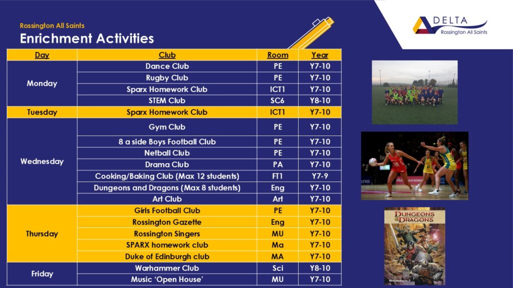 At Rossington All Saints Academy we offer a range of enrichment opportunities for our students. This gives students the chance to continue learning or to further a passion they may have once the school day finishes.